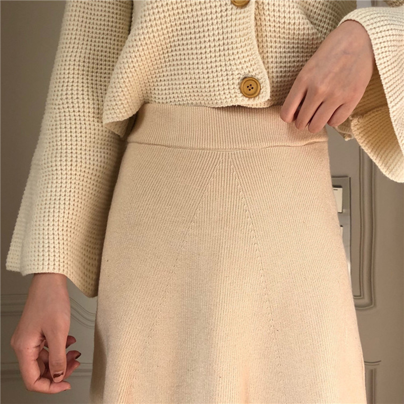 復古風破洞針織半身裙女秋裝新款高腰顯瘦中長裙休閑寬松A字裙子
