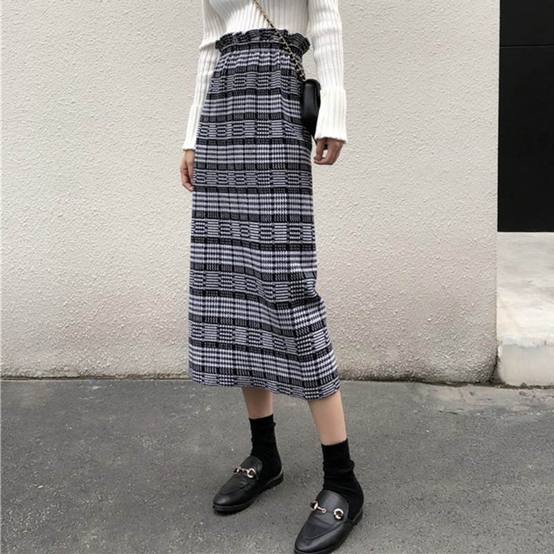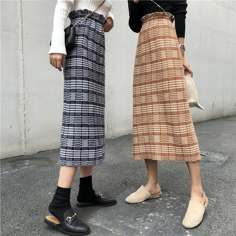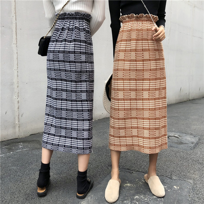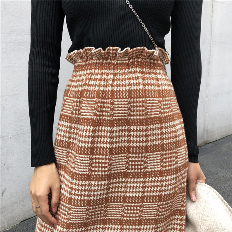 / 復古風高腰顯瘦格紋針織半身裙子女秋冬裝新款學生時尚A字中長裙