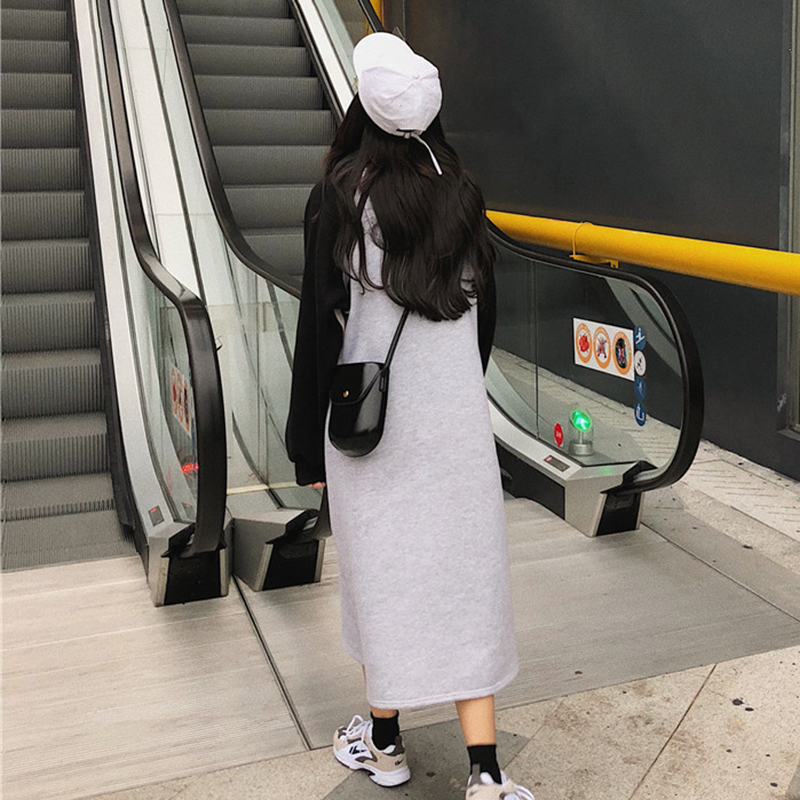 慵懶風加絨衛衣裙秋冬女裝2018新款韓版學生長袖連衣裙子拼色長裙