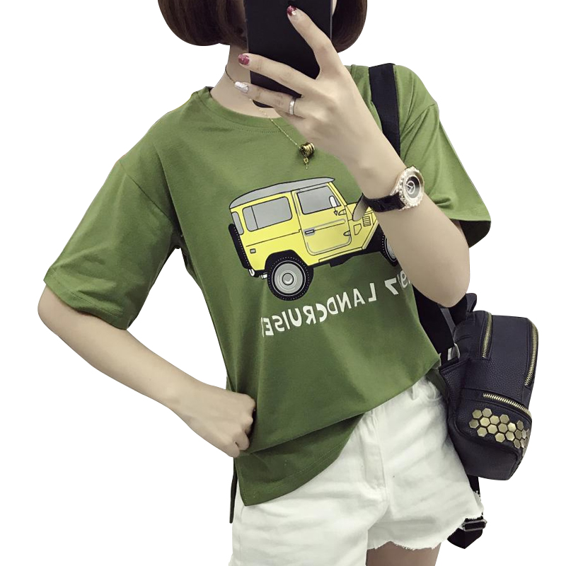 / 女裝學生卡通T恤女簡約新款上衣寬松短袖t恤大碼顯瘦夏裝打底